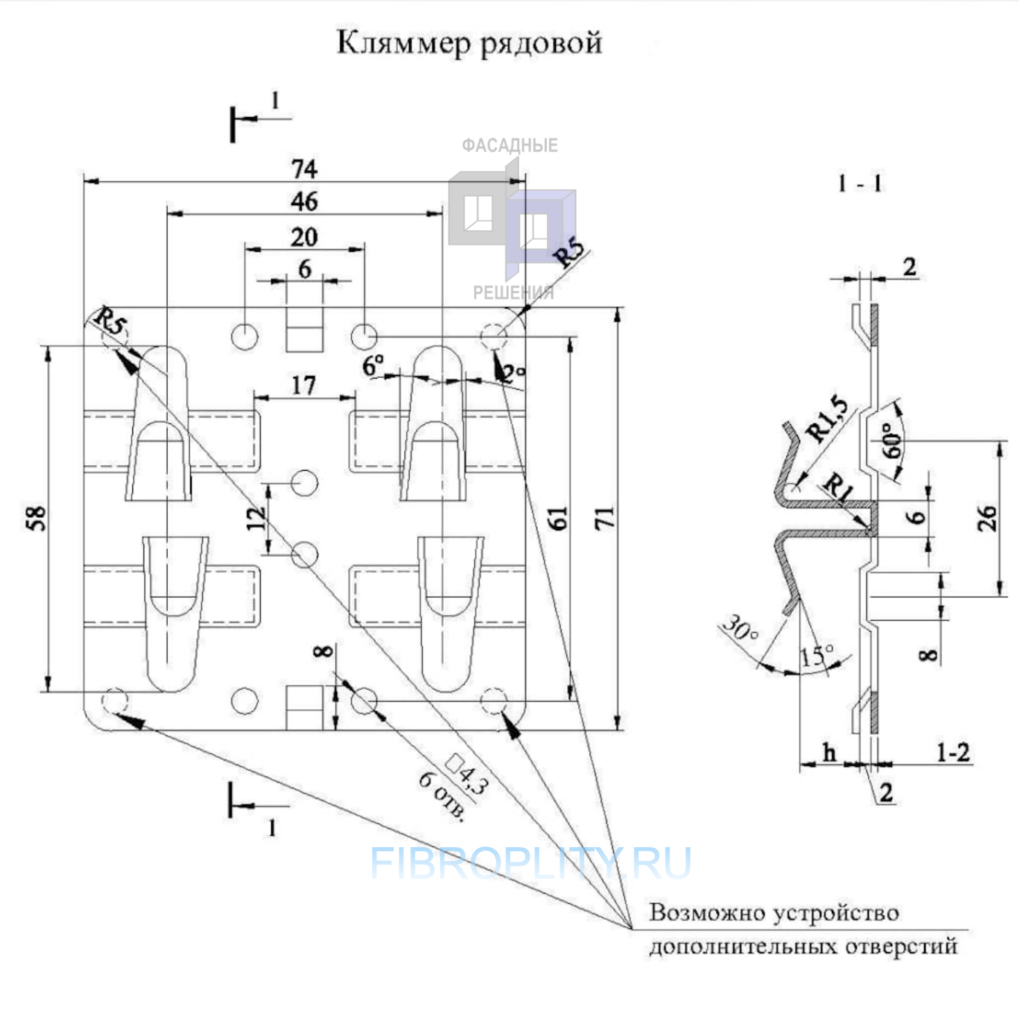 Чертеж и размеры рядового кляммера