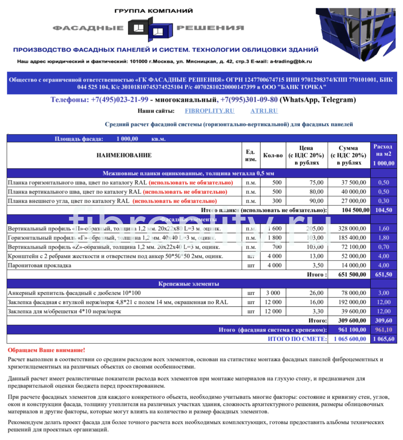 Предлагаем Вашему вниманию средний расчет фасадной системы оцинкованной (горизонтально-вертикальной) для фасадных панелей фиброцементных и хризотилцементных.
